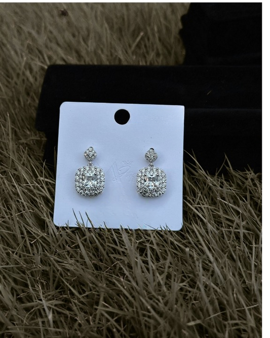 Sophisticated Stainless Steel Earrings with Baguette and Square-Cut Diamond Detailing