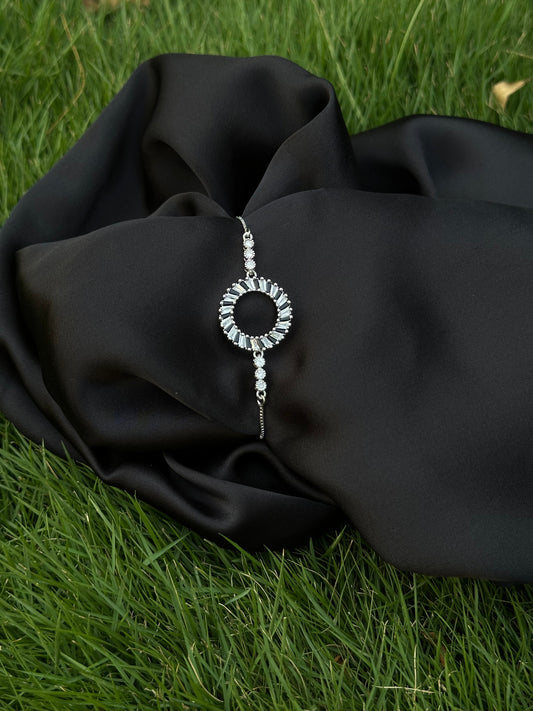 Elegant Stainless Steel Bracelet with Circular Diamond Design