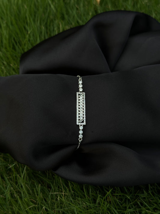 Stunning Stainless Steel Bracelet with Rectangular Diamond Design