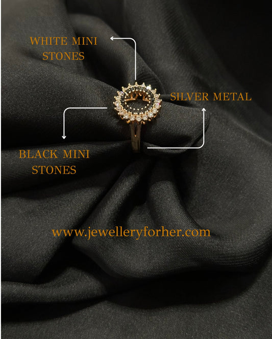 Radiant Halo Ring with Mini Stones in Black, Pink & Light Brown – Crafted in Stainless Steel