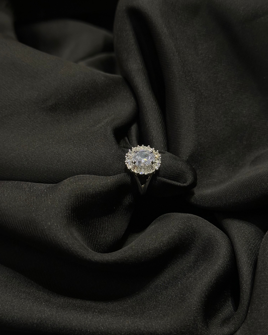 Radiant Halo Ring with Mini Stones in Black, Pink & Light Brown – Crafted in Stainless Steel