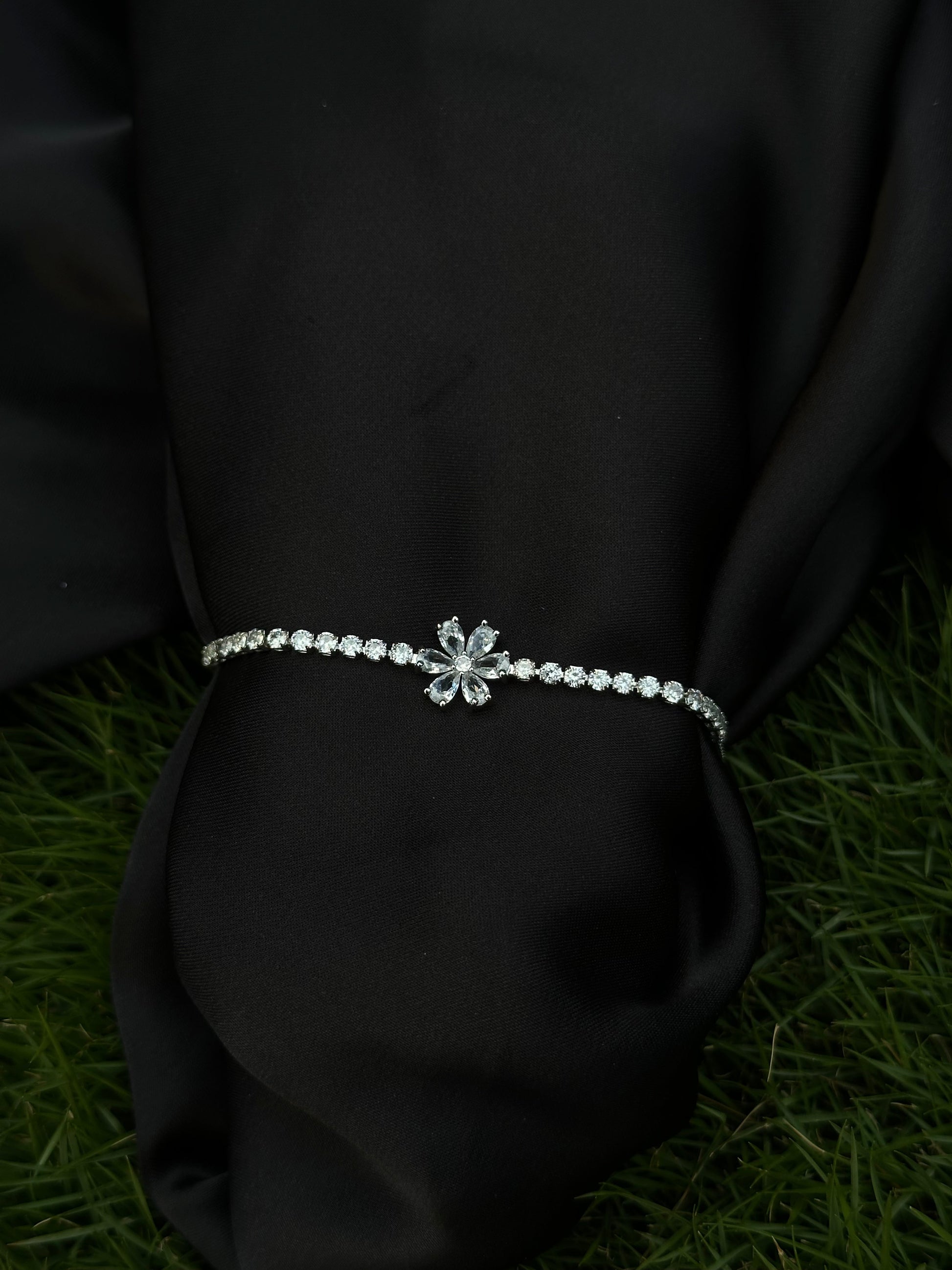 Blossom Spark Bracelet – Silver Stainless Steel Chain with Pink & Crystal Stones